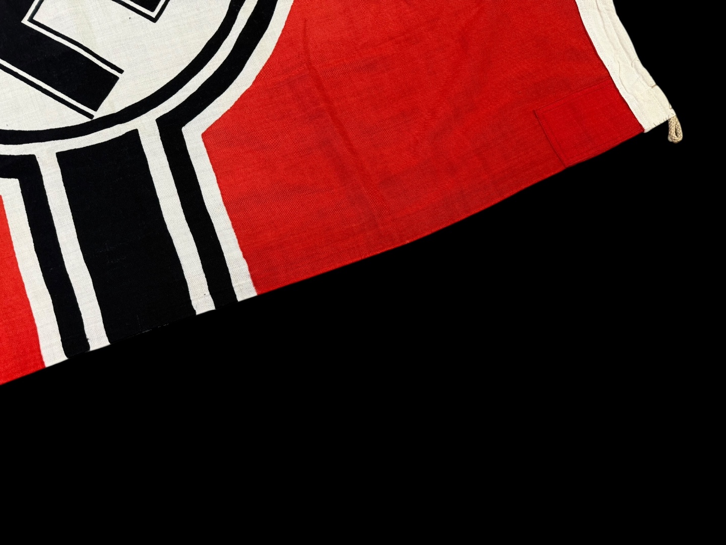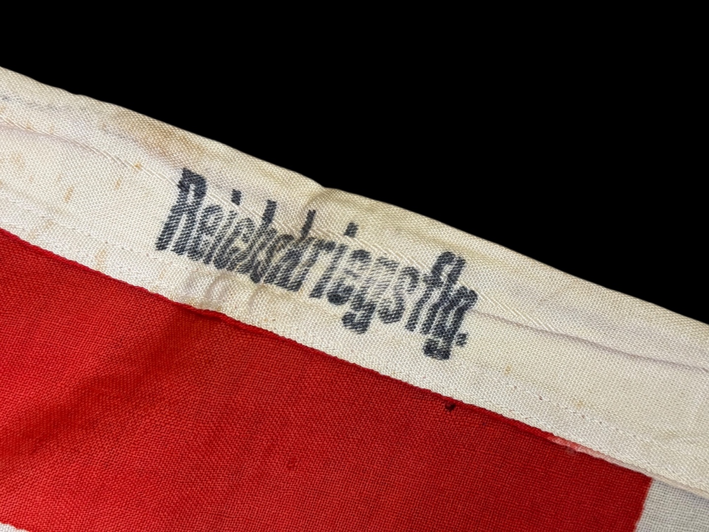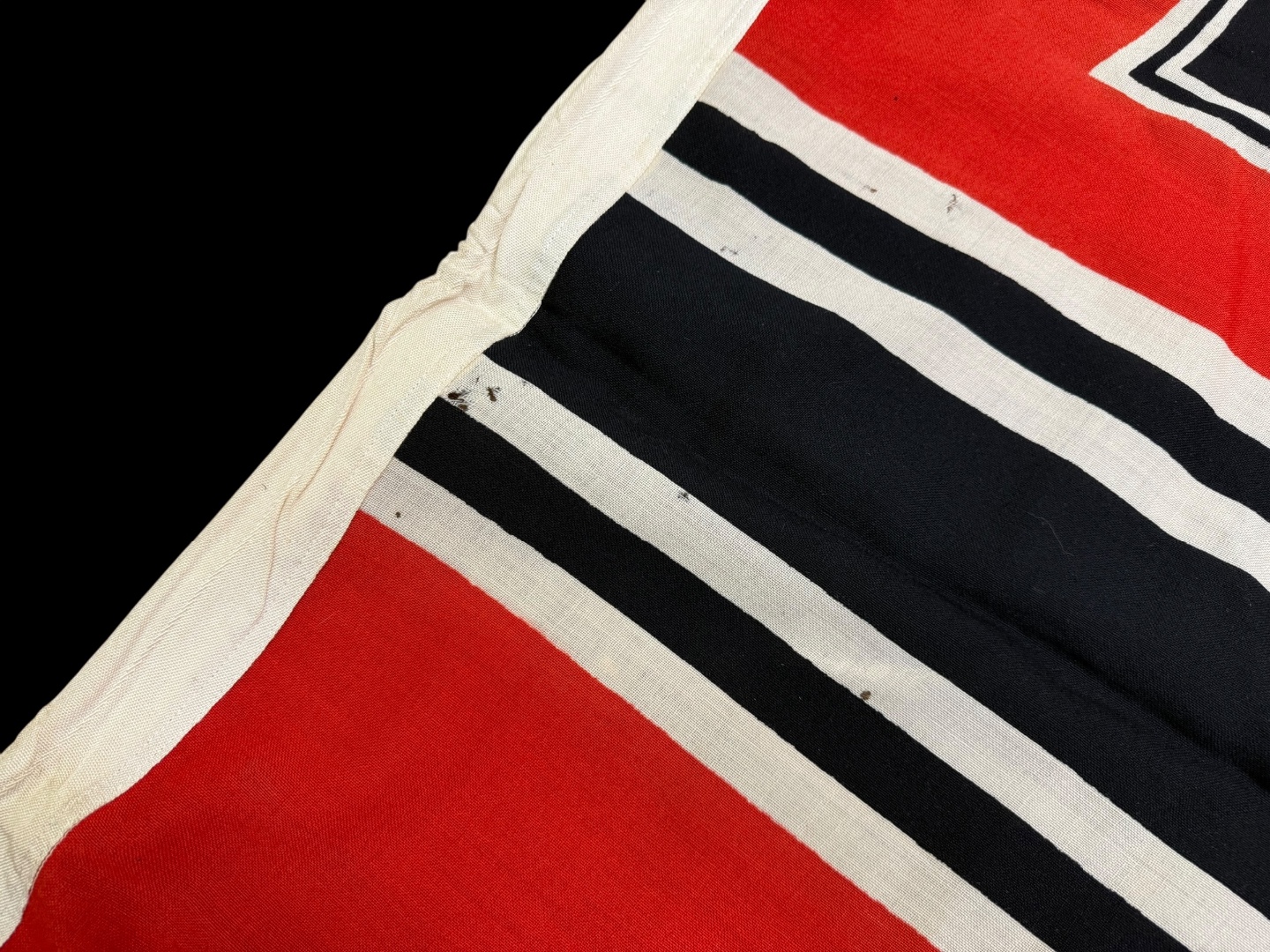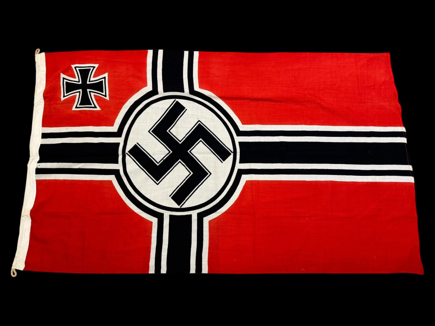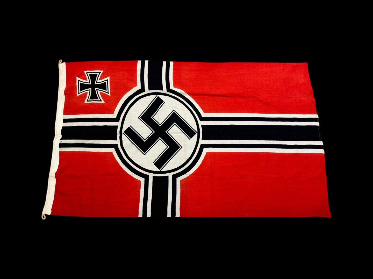 For sale is a Kriegsmarine “M” marked kriegsflag measuring 100x170cm. Screen printed cotton. High condition, few small holes barely noticable when looking at the flag broadly, colors are vibrant, ink stamps are clearly legible. Light to no soiling. Good clean battle flag in a great indoor display size.