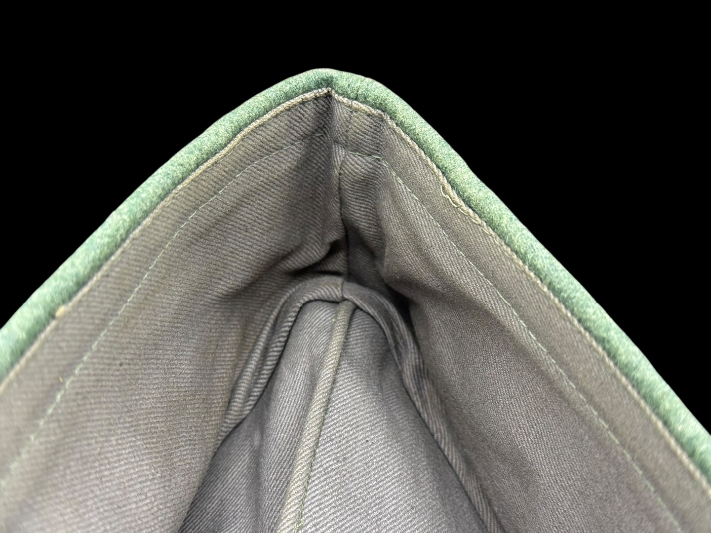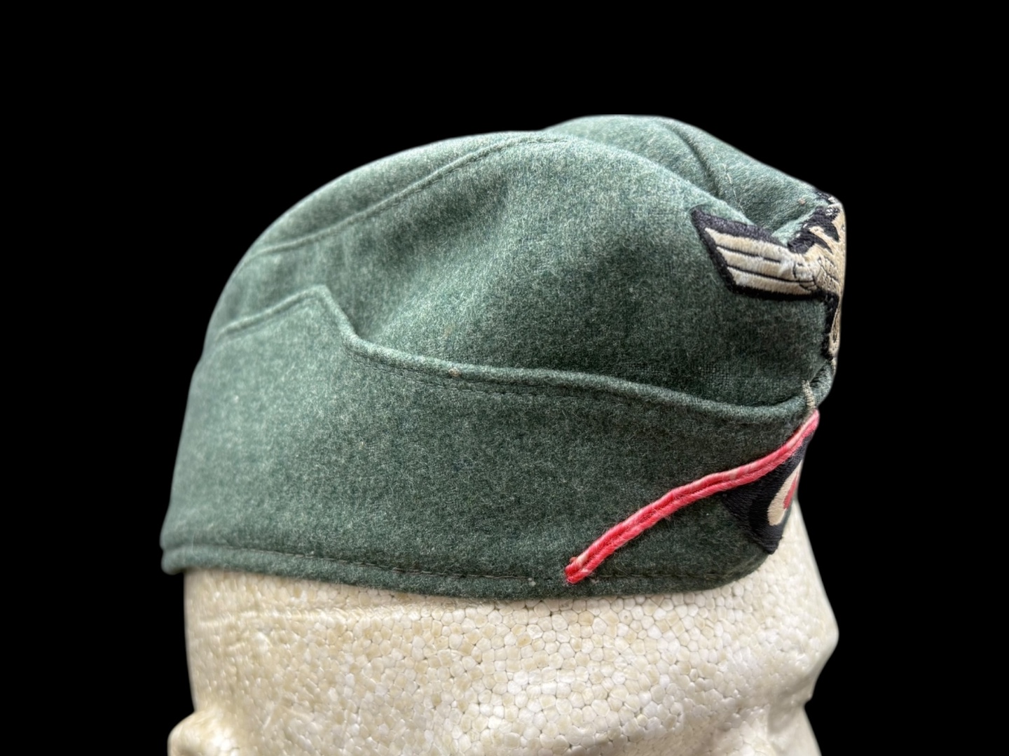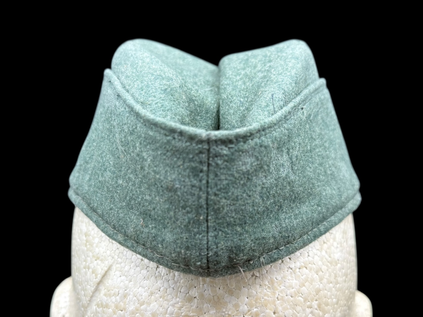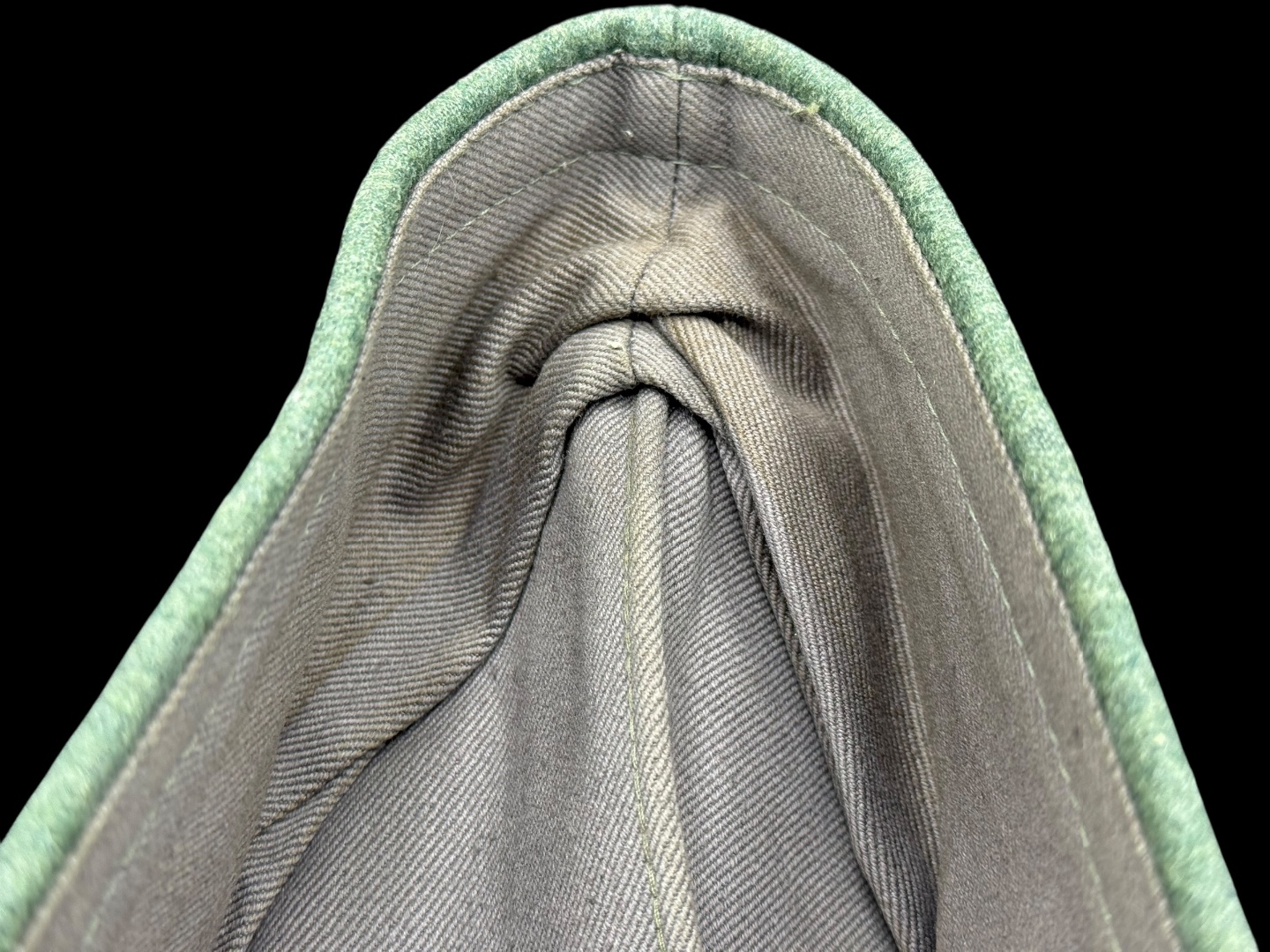 For sale is a nice condition field gray panzer overseas cap, size 58. Other than a single hole (possible moth snack) the cap is in great shape with pink piping in tact, signs of sweat and use in the liner but not a lot of wear on the wool nap.