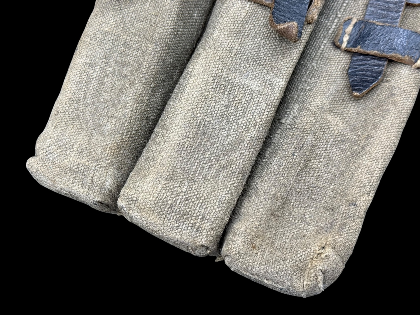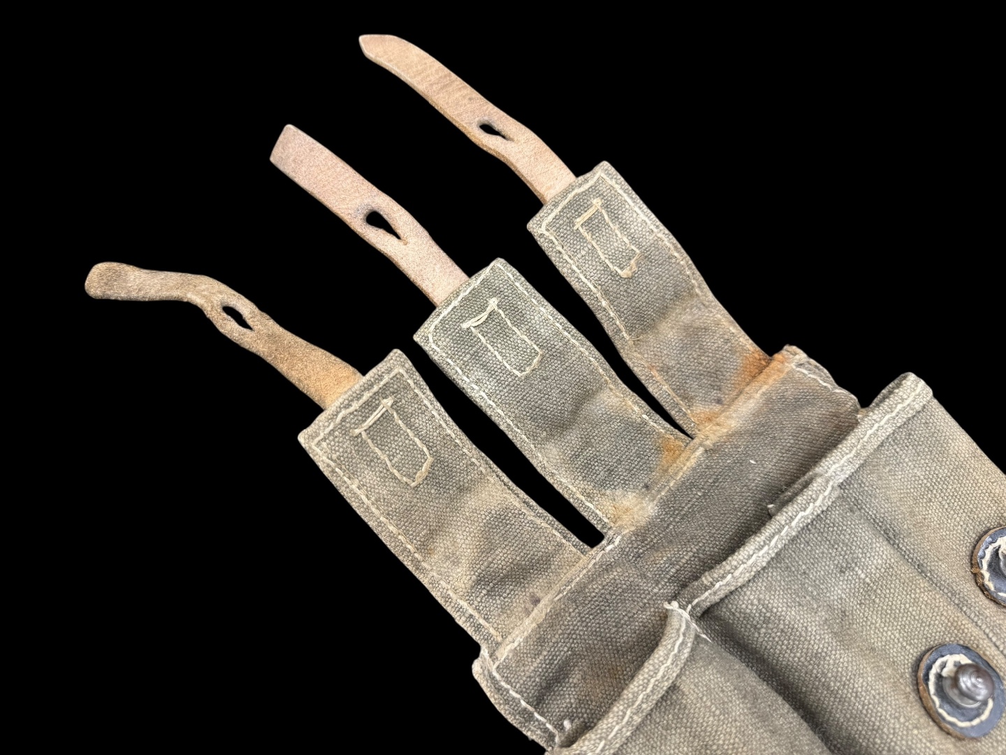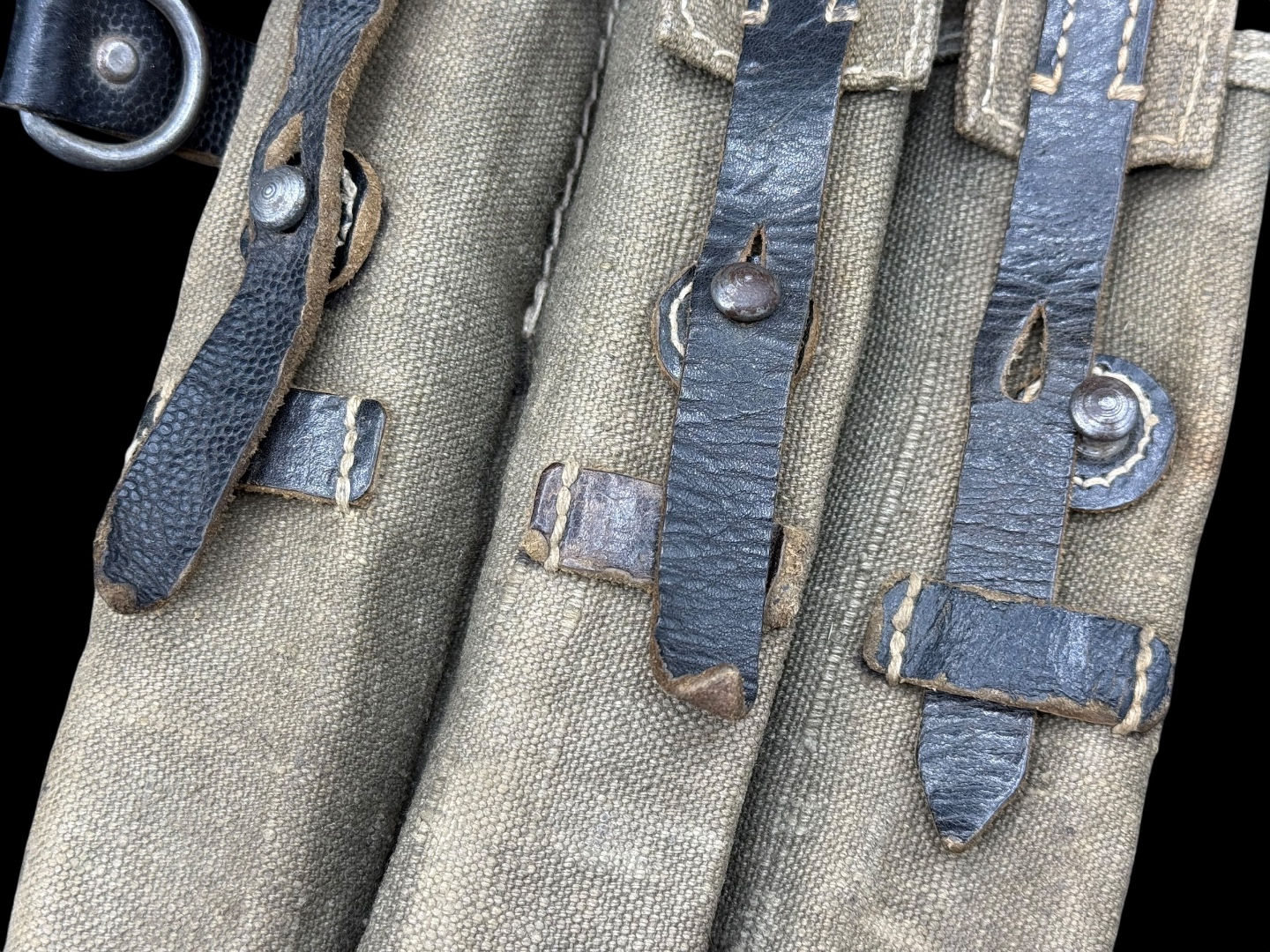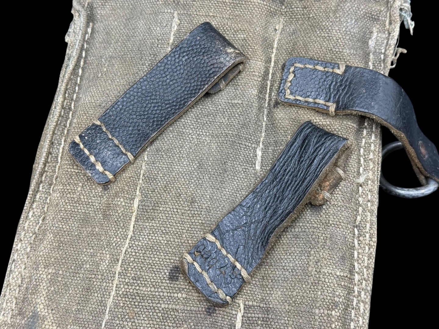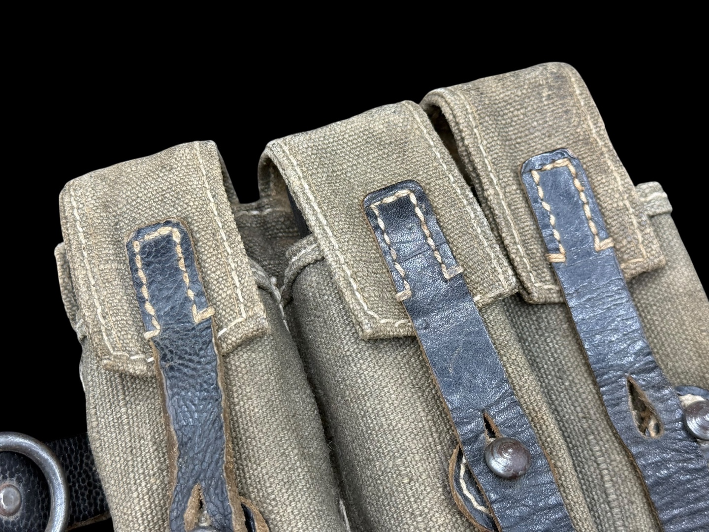 For sale is a 3-cell MP38/MP40 mag pouch in good condition, maker marked “ged” dated 1943. Canvas is clean and fully in tact, as are the leather straps while showing good amounts of use.